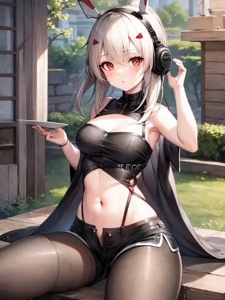 rock, silver hair, rock, shorts, black pantyhose, navel,