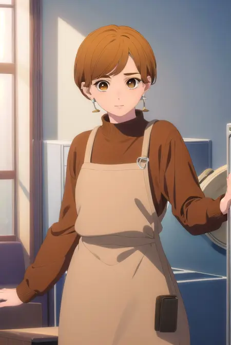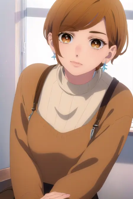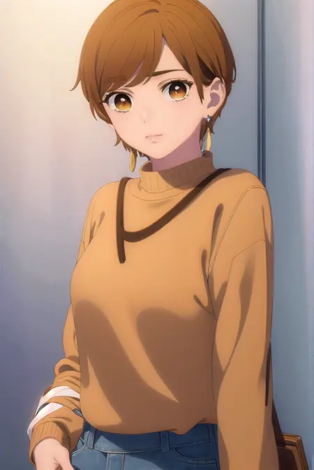 rin fujishiro, 짧은 머리, 앞머리, 갈색 머리, (갈색 눈:1.5),