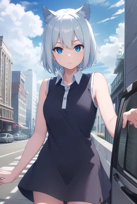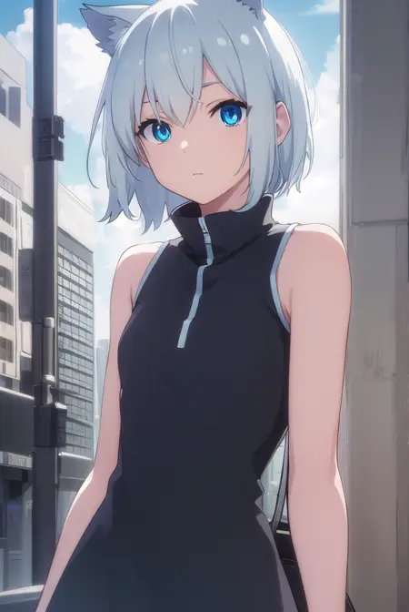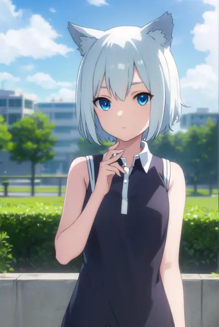 ao nanami, short hair, animal ears, cat ears, blue eyes,