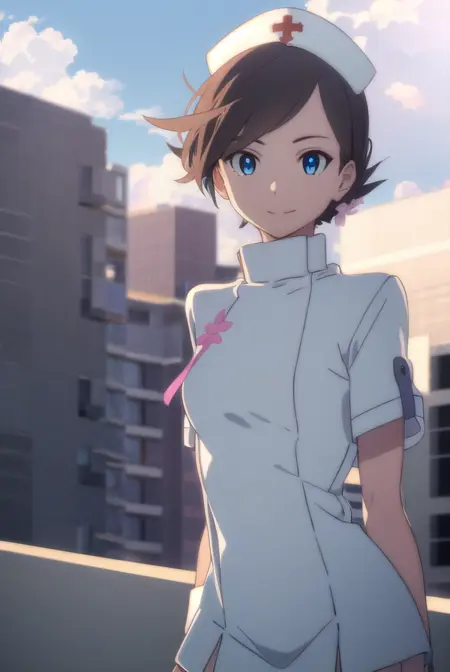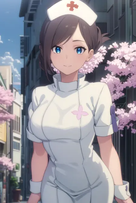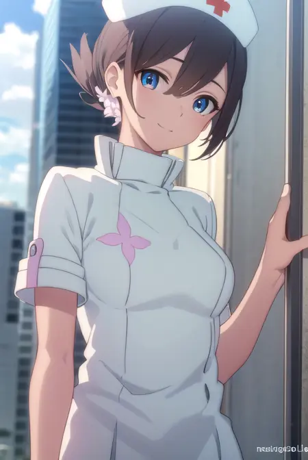 v juli f, 短发, 蓝眼睛, 棕色头发, 花, 头发花,