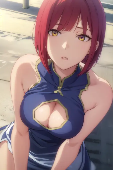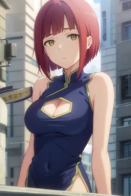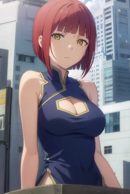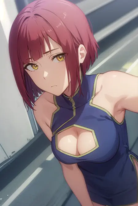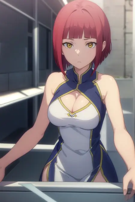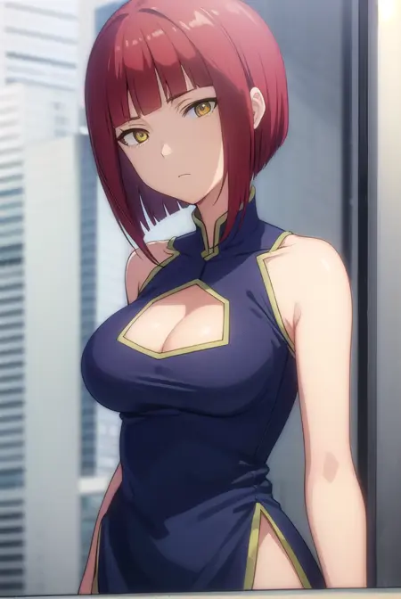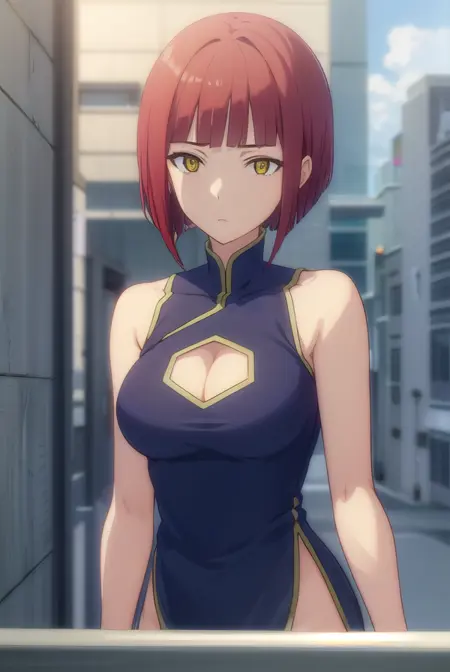 zakuro kurumaki, short hair, bangs, (yellow eyes:1.3), red hair, bob cut,