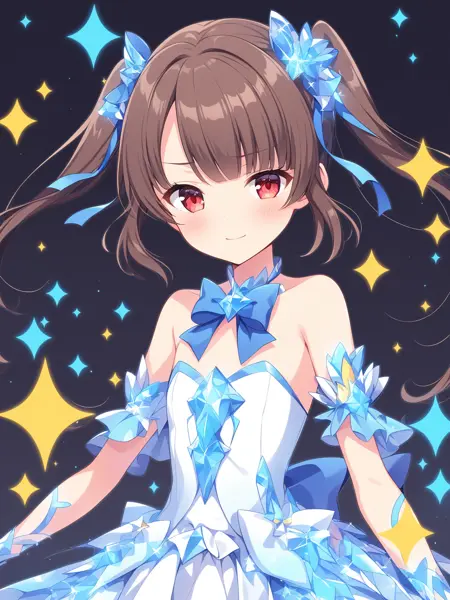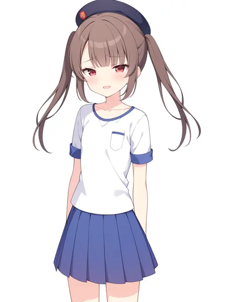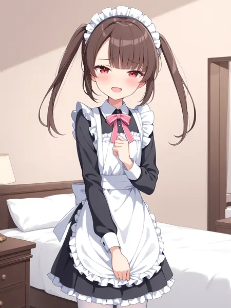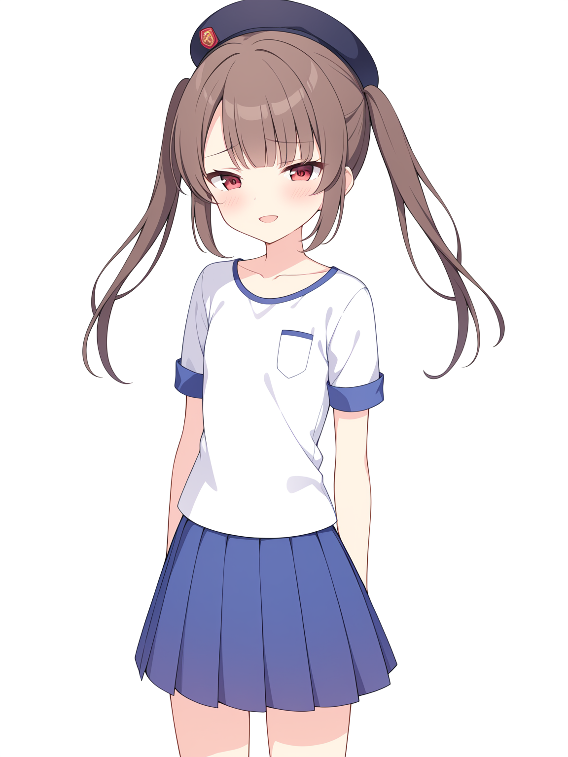 red_eyes, twintails, brown_hair, bangs, eyebrows_visible_through_hair, flat_chest, bangs,