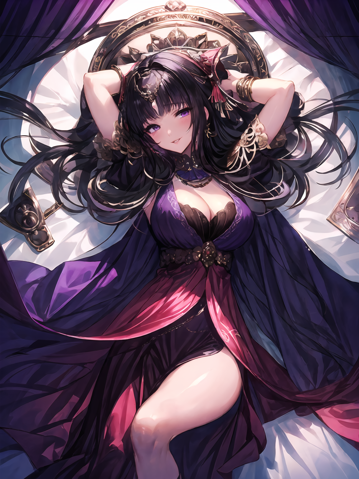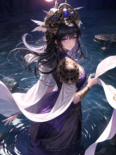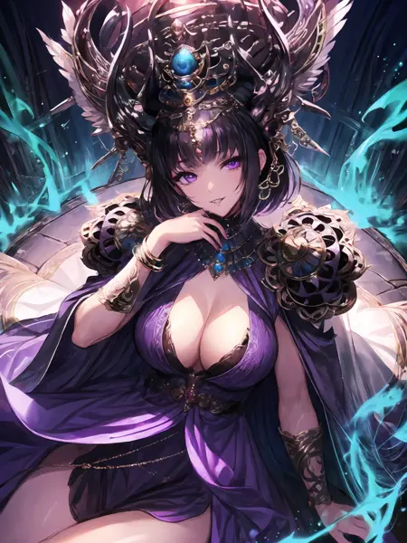 Basic characteristic : Black hair,long / short hair,purple eyes,crown,hair ornament ;