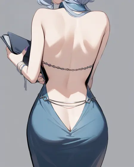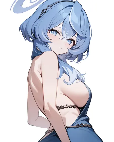 标签:ako,1girl,solo,光环,蓝色连衣裙,侧露腋下,替代服装,中长发,乳沟