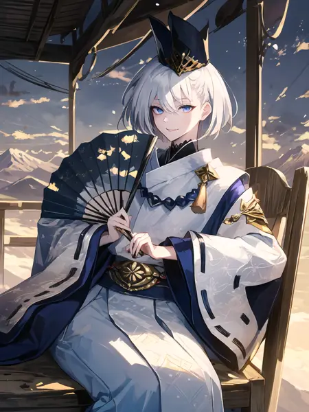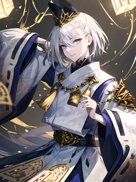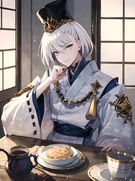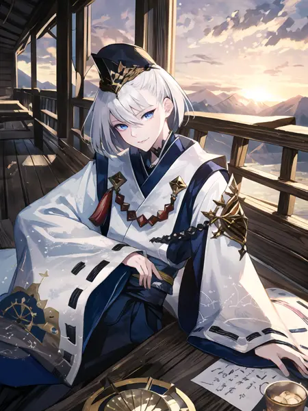 • 默认服装:帽子(立乌帽子),和服,服装剪裁,流苏,金边,珠饰,袴,宽袖;
