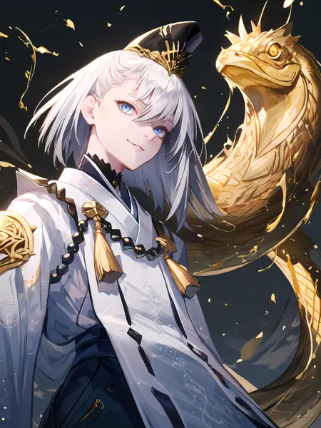 • 额外元素:手持/折叠(手)扇子,金色(液态)蛇,(手持)御符;