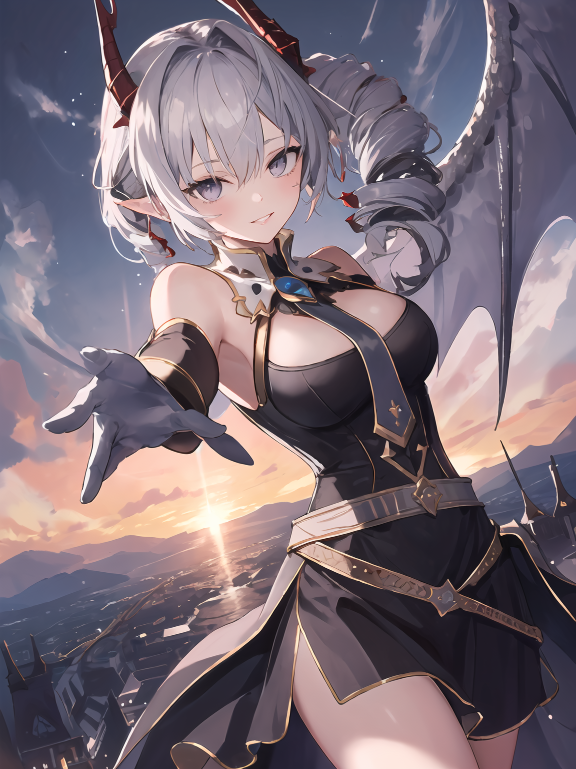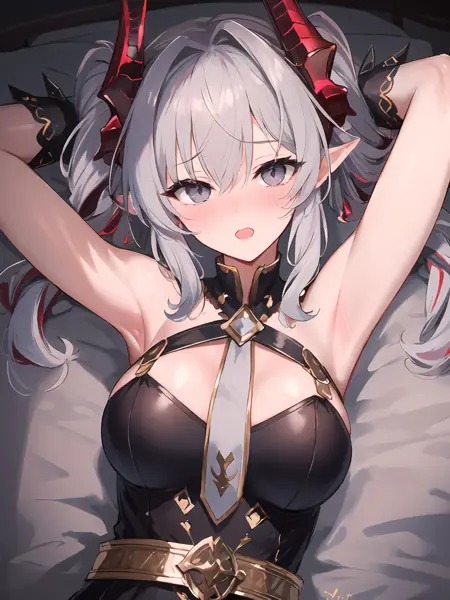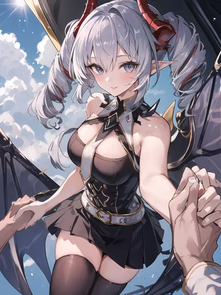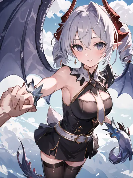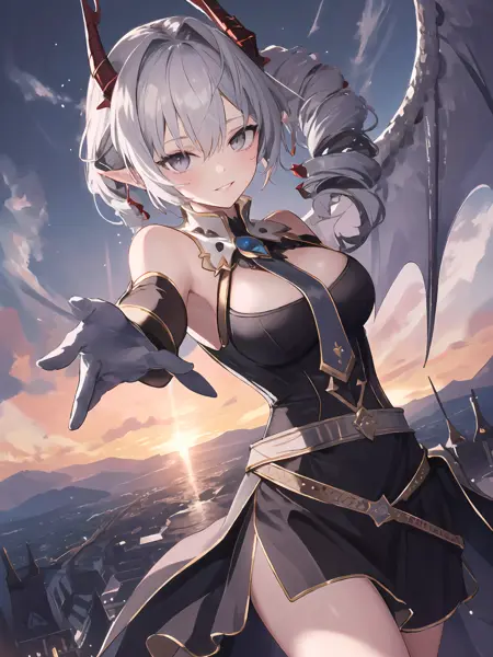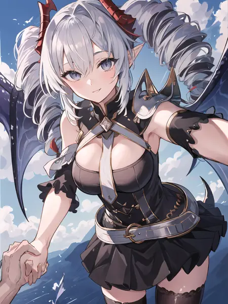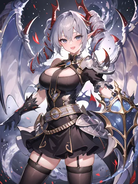 • Basic characteristic : Silver hair,drill hair,two-tone hair / inner red hair,horns,scales,grey eyes,pointy ears,single wing / wings ,tail,spikes ;