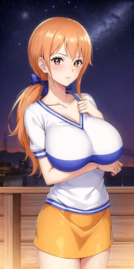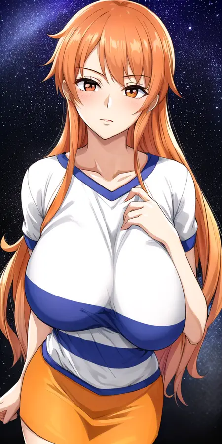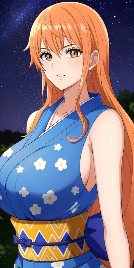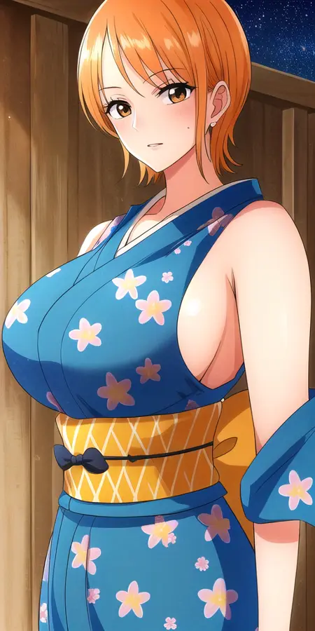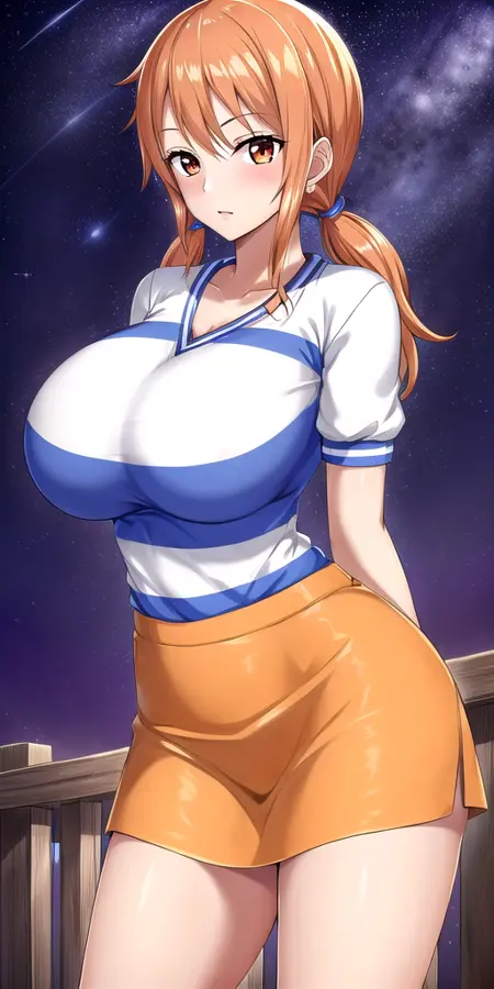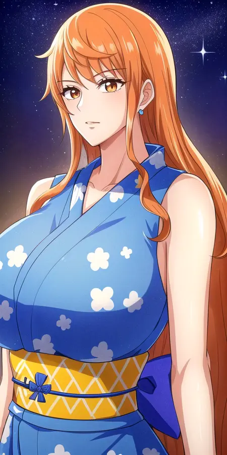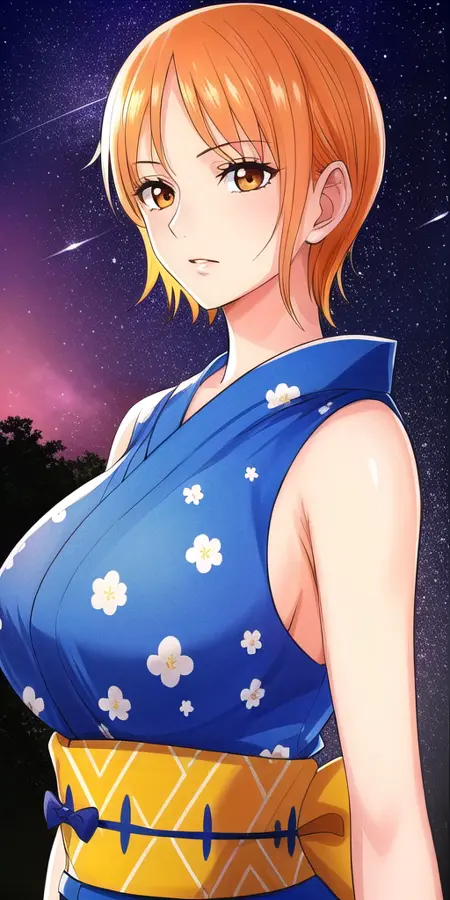 Works fine with: lora:NamiV2:0.7 n4mi, +a hairstyle