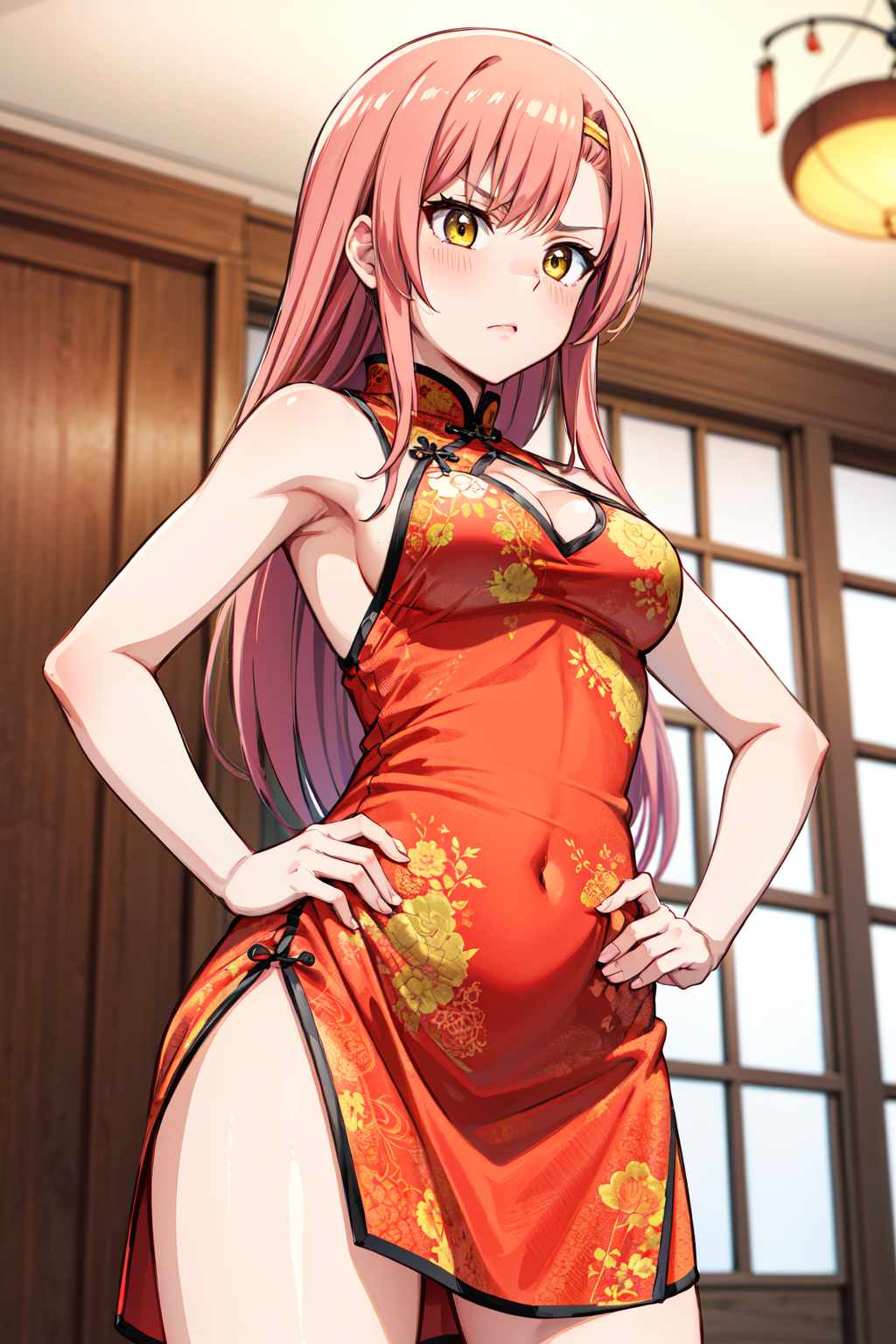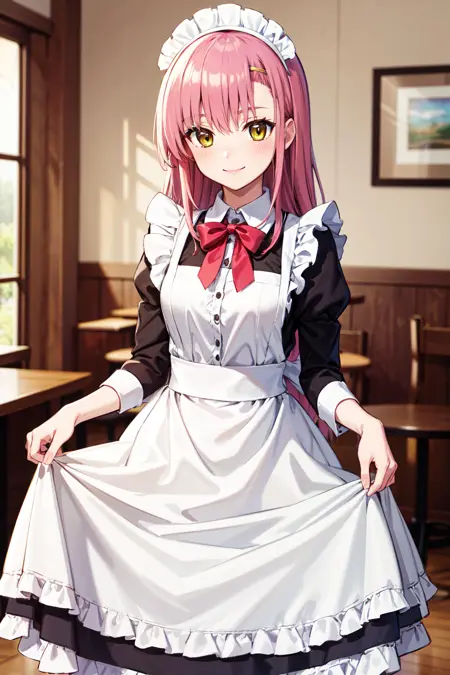 - katsura hinagiku,long hair,hairband,school uniform,serafuku,sailor collar,(dress:1.1),pink dress,neckerchief,shirt,long sleeves,skirt,long skirt,thighhighs,black thighhighs,loafers,brown footwear