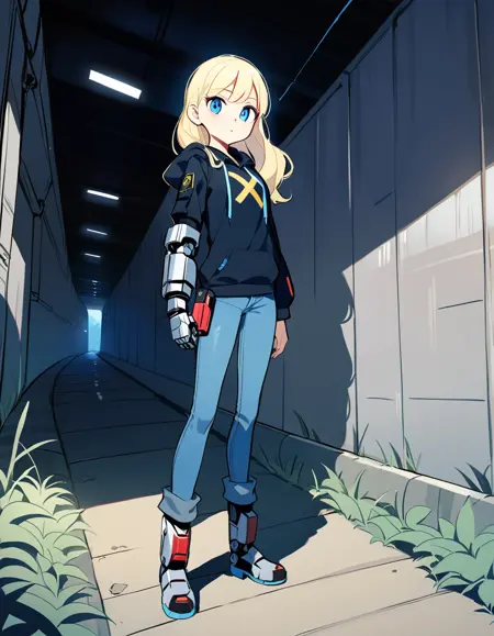 The heroine from the Captain N fan remake proposal (named "Sam" in various concepts). Prompt is "SamN", outfit is "jacket,shirt,belt,jeans,boots". "Single Glove" or "Single Mechanical Arm" might work for her Power Glove, but it's currently erratic.