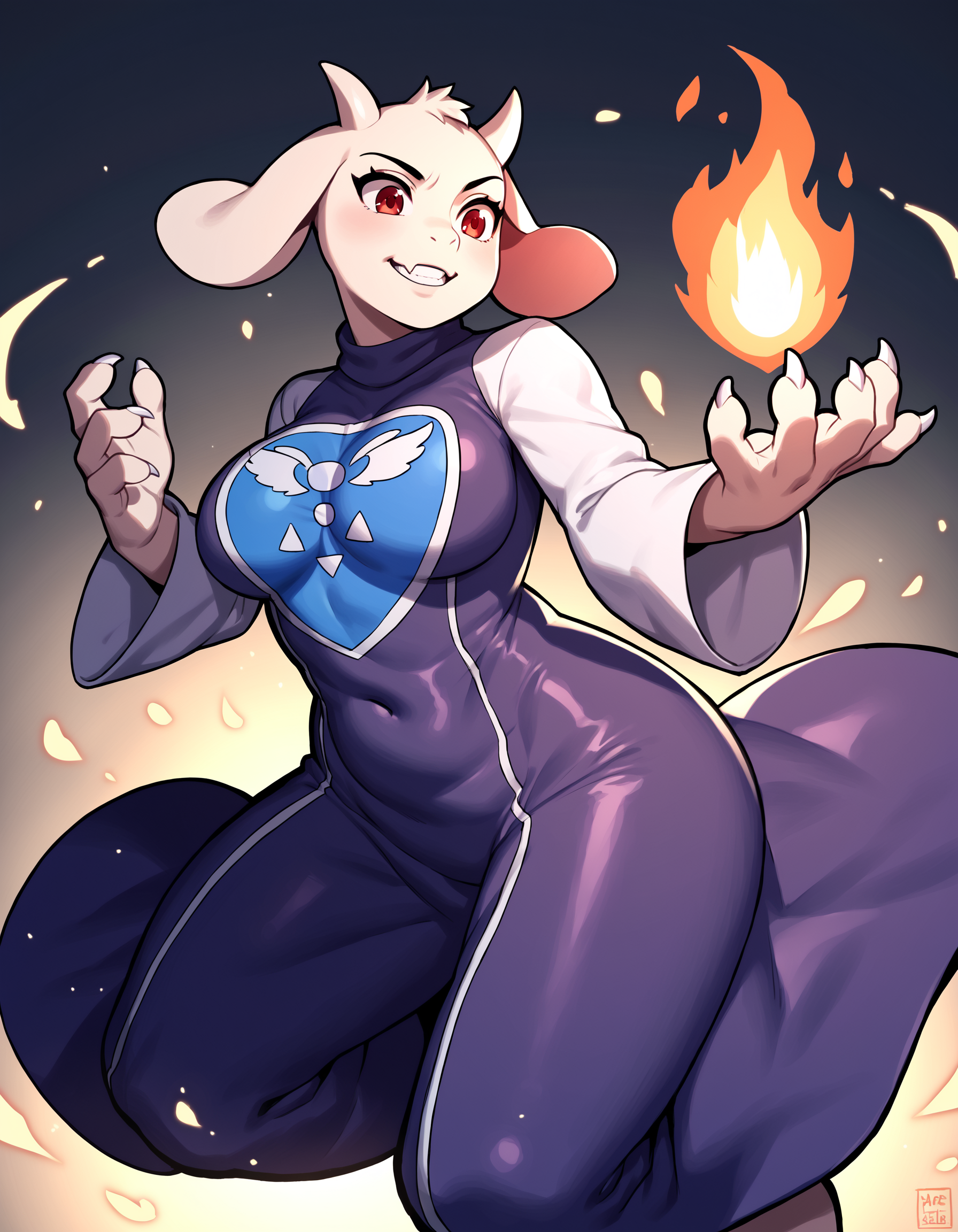 Note: Quality varies between characters. In version 1.0 of Animagine, avoid generating Asgore or Napstablook due to overfitting. Version 1.1 and onwards work better, but caution is still advised.
