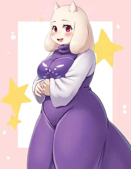 참고: 인물마다 품질이 다릅니다. Animagine 버전 1.0에서는 과적합으로 인해 Asgore 또는 Napstablook 생성을 피하세요. 버전 1.1 이후는 더 나은 성능을 보이지만, 여전히 주의가 필요합니다.