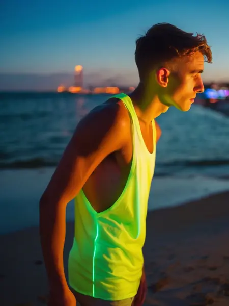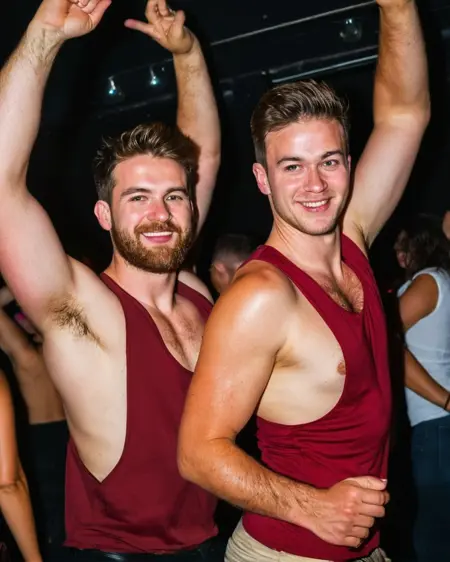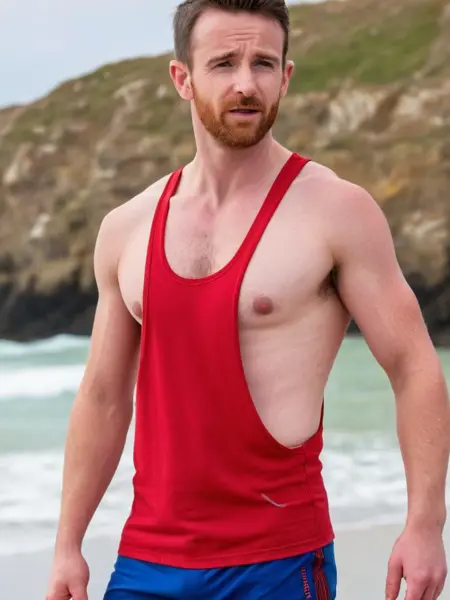 トリガー語は必要ありませんが、「タンクトップ」「ノースリーブシャツ」「ジム用のストリング」「シングレット」などの言葉を参照してください。男性に腹筋見せのトップスや裸の状態が増えすぎる場合は、「Shirt:1.2」とだけ「tank」と入力すると効果的です(「top」の語は含めないでください)。