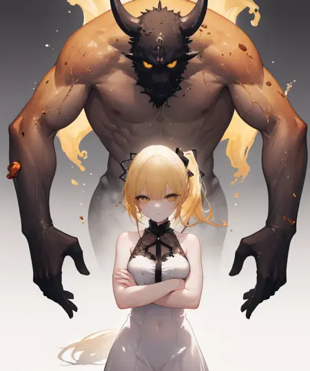 注意:このLoRAは純粋に実験的なものであり、多くの点で議論の余地があります。たとえば、このLoRAがなくても、Stable Diffusion上でimg2imgやRegionalPrompter+ControlNet、その他の多くのツールを使ってすでにこの効果を実現可能です。また、守護者を正確に説明することは不可能ですが、考え方に若干近づくことはできます。ADetailerの使用を強く推奨します。私は複数のチェックポイントでテストを行いましたが、多くは悪質な結果を生みました。