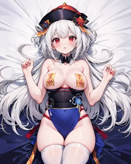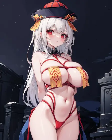 今回のLoRAは、「清官帽」、「乳首に貼られた符札」、「離脱した袖」、「チャイニーズ・ドレス(旗袍)」の組み合わせです。まあ、もしかすると「華甲」のコスプレ用LoRAかもしれません。