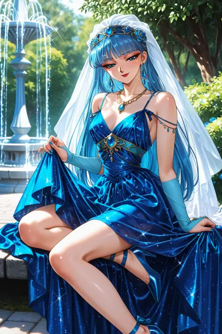 Umi: blue eyes, blue hair, long hair, straight hair, blunt bangs