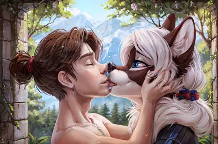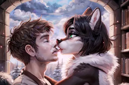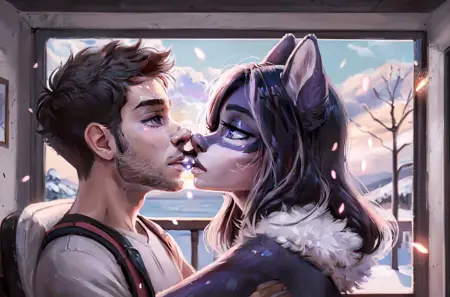 This was the request from a friend who's thing is nose rubbing. He was very particular and wanted the nose to nose action that is more dynamic than most models can do. He wanted some squish in there. 😅 We asked the bounty for a model, and it was not quite up to the par, so here is one that is pretty on par with what he wanted.