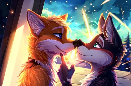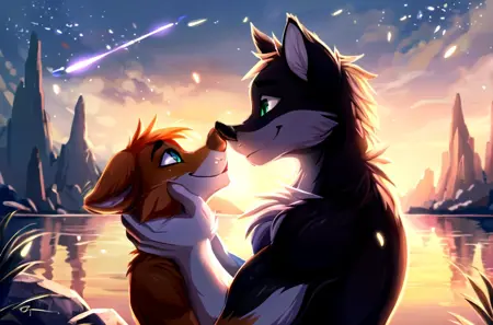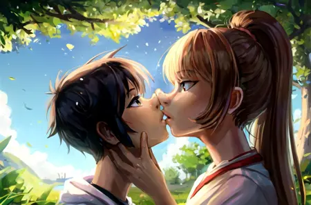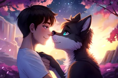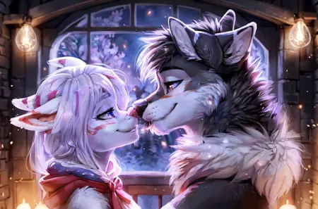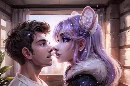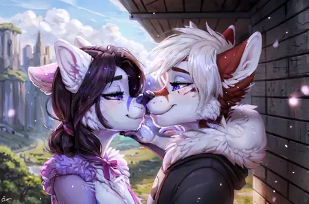 This was the request from a friend who's thing is nose rubbing. He was very particular and wanted the nose to nose action that is more dynamic than most models can do. He wanted some squish in there. 😅 We asked the bounty for a model, and it was not quite up to the par, so here is one that is pretty on par with what he wanted.