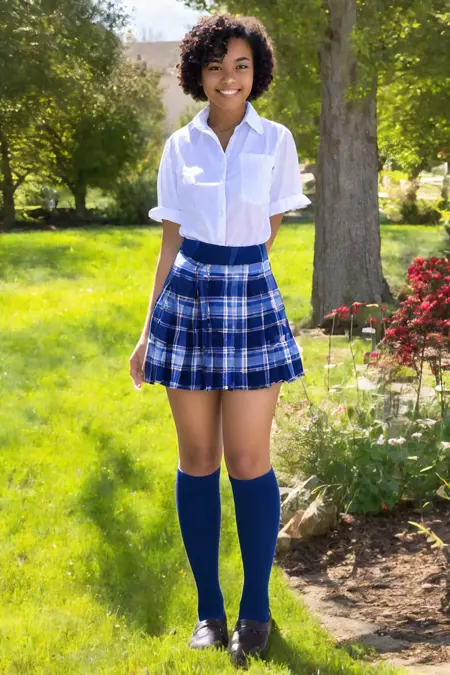 <lora:catholic_schoolgirl_uniform_6000_lora_f32:1> catholicschoolgirl, (masterpiece, best quality), 1girl, {white|caucasian|black|latinx|asian} skin tone, 18 y.o, {short|long|braided|ponytail|pigtail|pixie-cut|bun} {red|blonde|ginger|brown|tawny|frizzy|black|auburn} hair, {white|blue|grey} {button-down|polo shirt|hoodie}, {red|blue|grey|green} plaid skirt, {socks|kneehighs|knee socks|tights|thighhighs}, (full body:1.3), {outside|school hallway|locker room|classroom|walking in city}, {front|3/4|side|rear} view