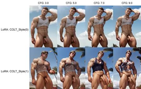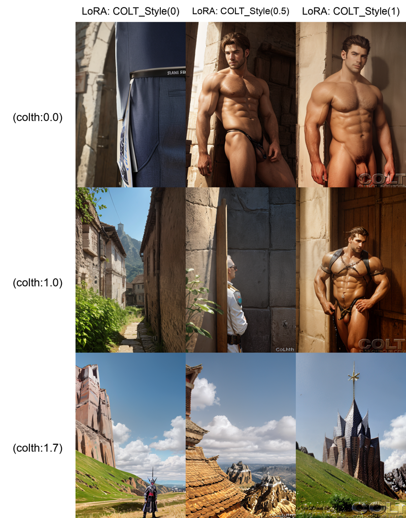 'colth' 태그는 오타가 아니라, 다른 의미에서 'colt' 태그를 덮어쓰지 않기 위한 대안입니다. 프롬프트에 'colth'만 사용한 테스트 결과: