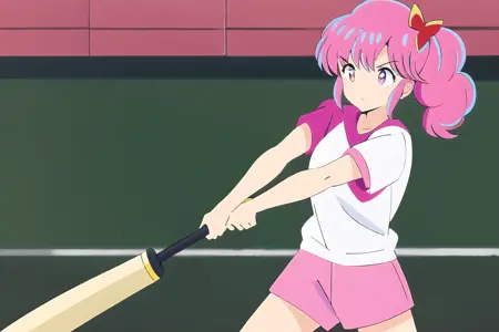 提示词:最佳画质,1位女孩,站立,美丽面容,尖下巴,(短发:0.5),粉色头发,眉毛从发丝中可见,刘海,蝴蝶结,粉红色眼睛,《乱马1/2》,兰,