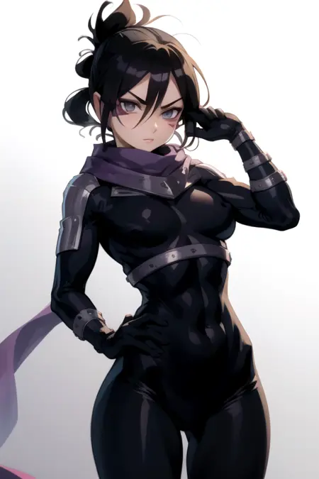 speedosonic, scarf, folded ponytail, otoko no ko, facial mark, bodysuit