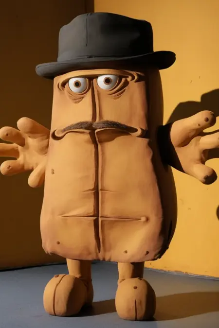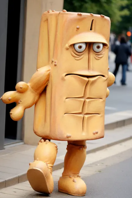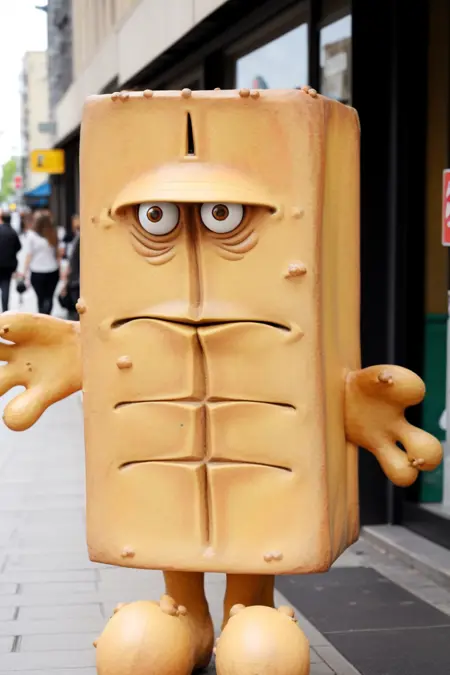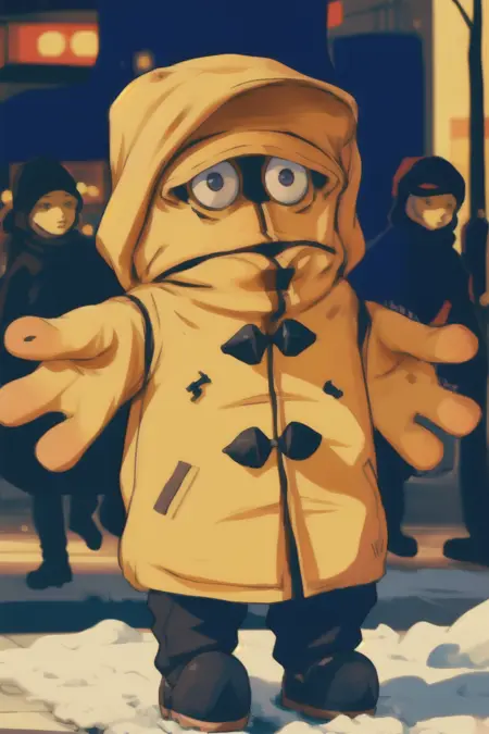 A puppet character and mascot of German TV channel KiKA. The model works pretty well when it comes to standard appearance, but putting various outfits on the mascot can get quite tedious - ideally you want to emphasize outfit or its pieces with parentheses. Adding "no humans" might help preventing it from being too anthropomorphic. Works best with photorealistic models, less successful with anime and cartoonish ones.