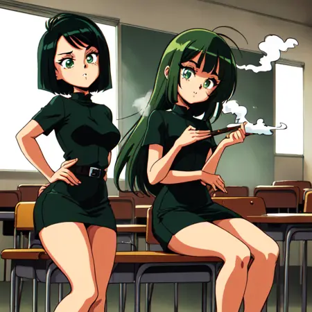 원하시는 레트로 느낌을 얻으려면 '80년대 애니메이션 스타일' 또는 '90년대 애니메이션 스타일'을 사용하시면 됩니다 :)