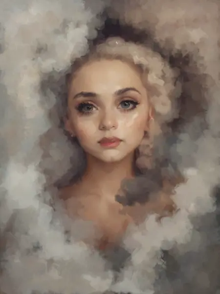 煙を模倣するブラシでいくつかの絵を描きました。期待通りの機能を果たしていますが、今回は一部の領域にだけ目的の効果が追加され、一部の細部がより鮮明になり、飛び出しているような不思議な挙動があります。