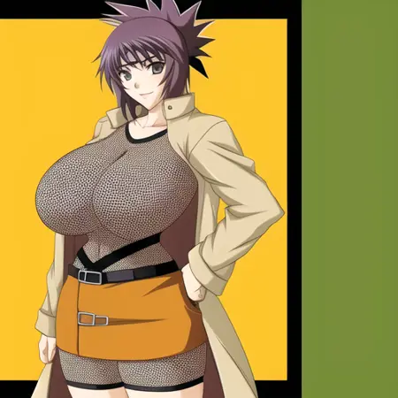 Had good results with: lora:AnkoMitarashi:0.55, AnkoMitarashi, solo, big_breasts, AnkoCoat, AnkoFishnet, microskirt, covered_nipples