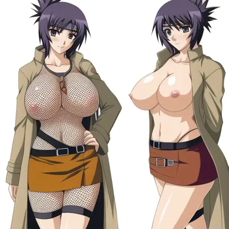 좋은 결과를 향한 조합은 다음과 같다: <lora:AnkoMitarashi:0.55>, AnkoMitarashi, solo, big_breasts, AnkoCoat, AnkoFishnet, microskirt, covered_nipples