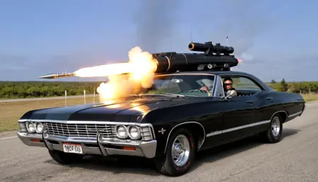 1967年型Chevrolet Impalaのトランクに武器が詰まったオープン状態