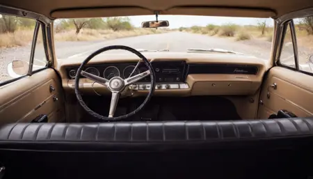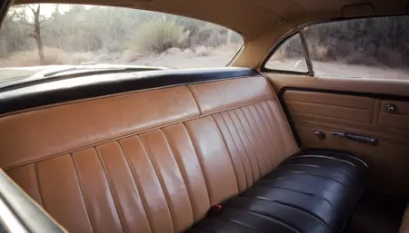 Chevrolet Impala 1967 내부에 앉아 있는 사람의 뒤쪽 실내 촬영