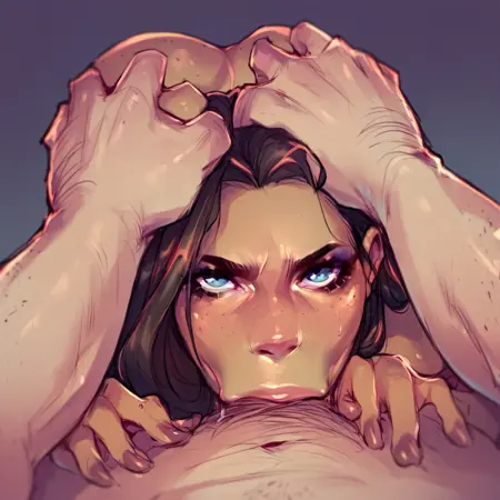 trained on deepthroat where the penis isn't visible, or is barely visible, combines well with full-face blush and cum in nose