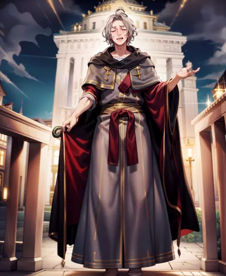 He also has his robe outfit, prompt snakeze, robe, cloak for it.
