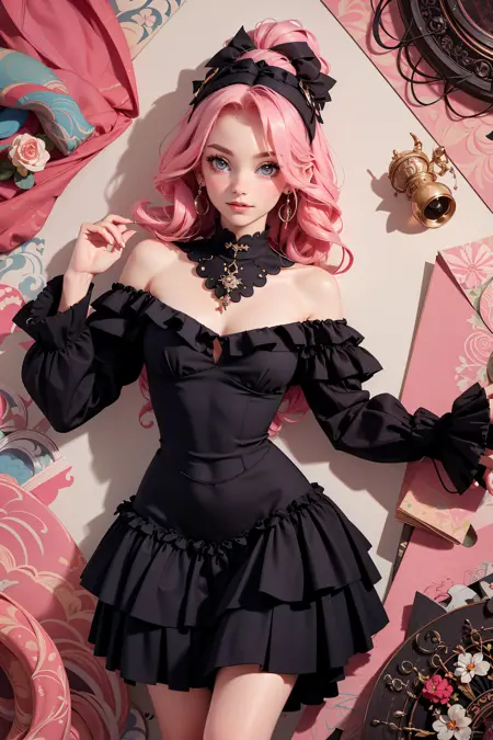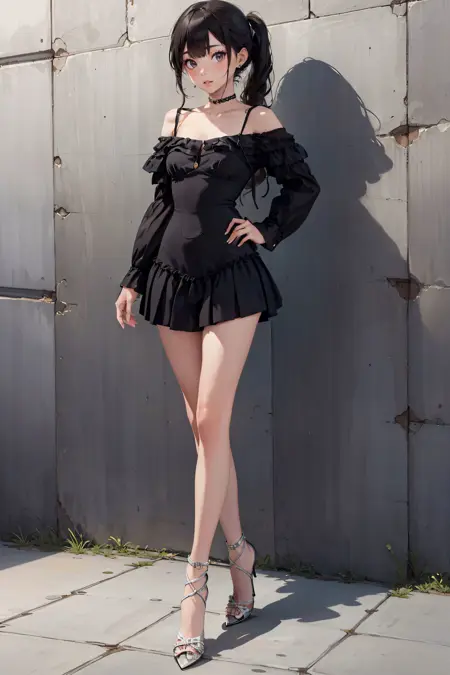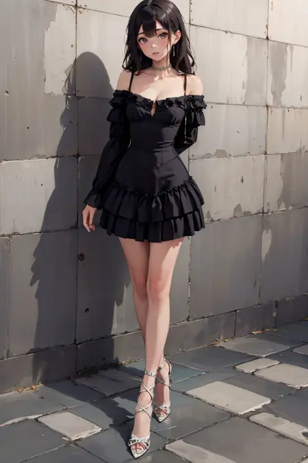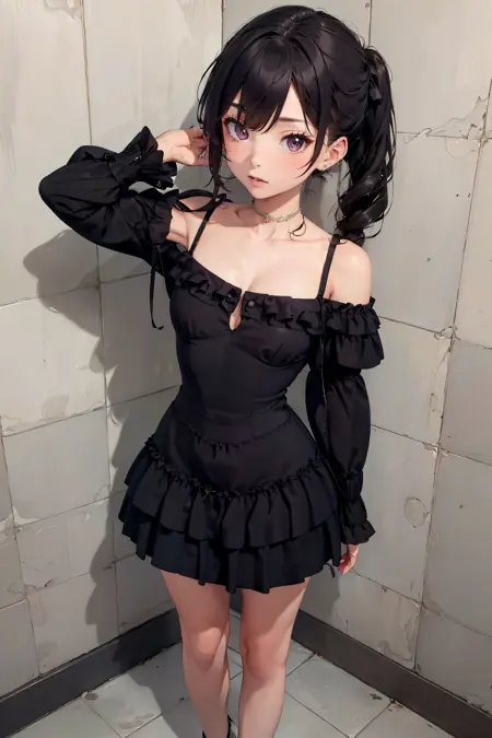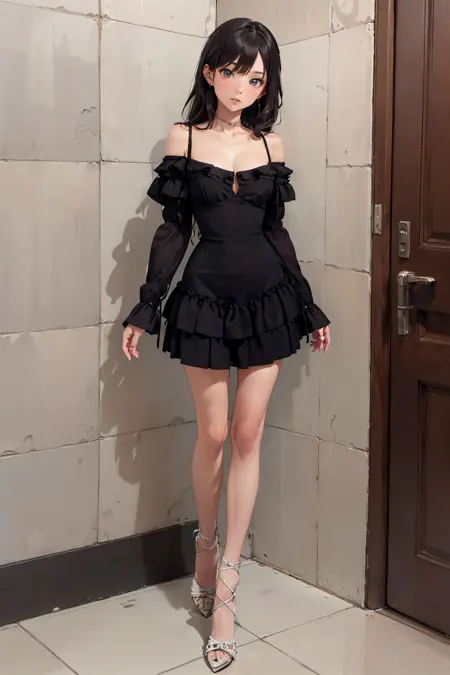 *Trigger Words:- lullaby dress, off shoulder dress, bare shoulders, black/white dress, frills