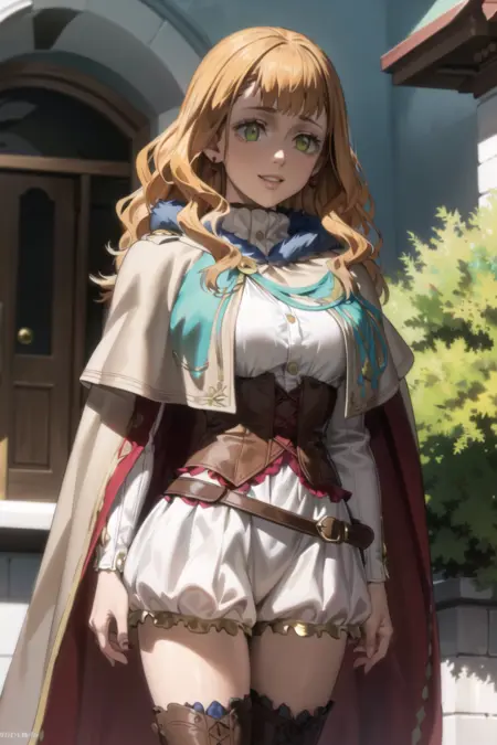 mage_dress, golden_cape,mimosa_earrings, white sleeves, white skirt