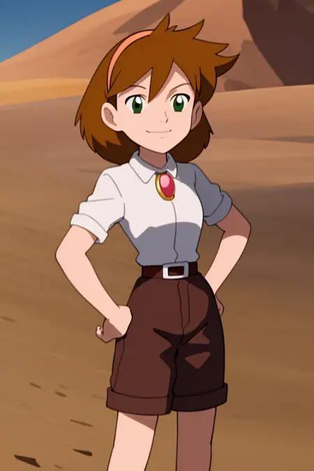 衣装2プロンプト:white shirt, brown shorts, belt