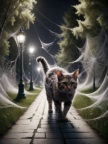 A bit late for Halloween, but inspired by a large cobweb I saw in the corner of my room today. This LoRA will give a good, old-fashioned cobweb styling to your images, sometimes it'll even throw in some spiders - not so good for those of you who suffer from arachnophobia.