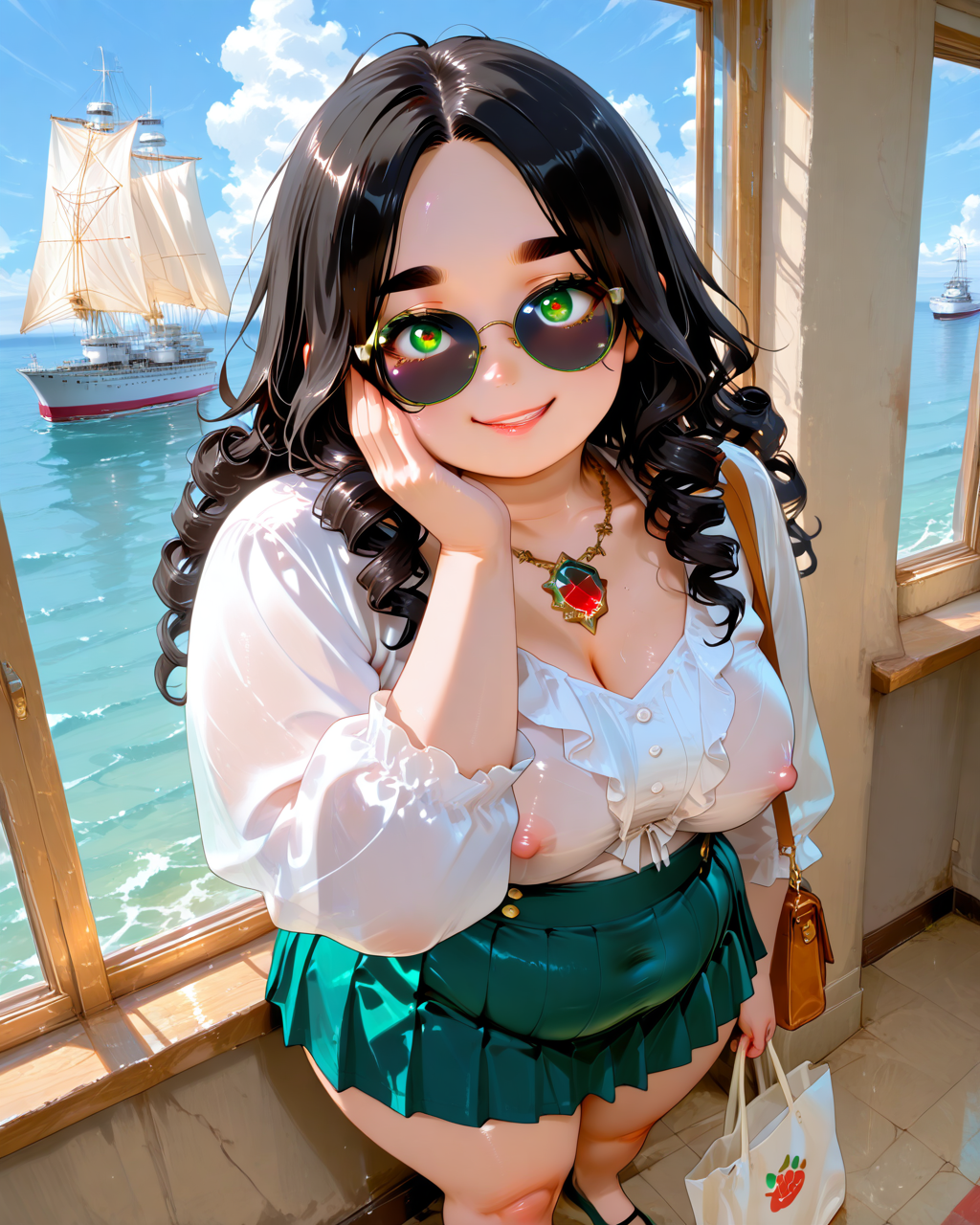 BREAK 1girl, mature female, (curvy), round-chin, caucasian, lora:ETO_OC_Illustrius:0.8, eto_oc, skindentation, (plump:1.7), thick thighs, wide hips, busty, voluptuous, large breasts, glistening skin, perfection style, perfection, five fingers, five toes, covered nipples, covered areolas,