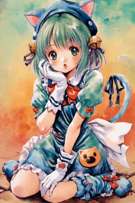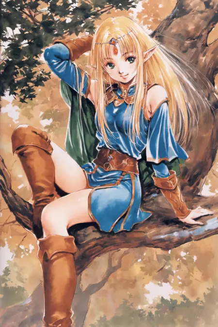 这个模型拥有很好的画风模仿效果,训练图片全部来自该画师的原画集。