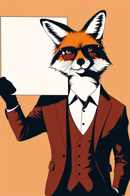 比如:master piece, high quality, a Game developer fox programmer holding up a blank white sign