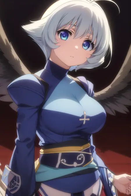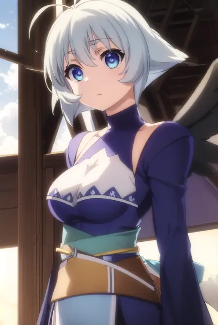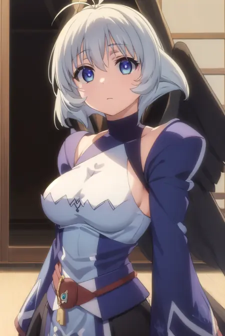 kamyu, short hair, blue eyes, ahoge, antenna hair,