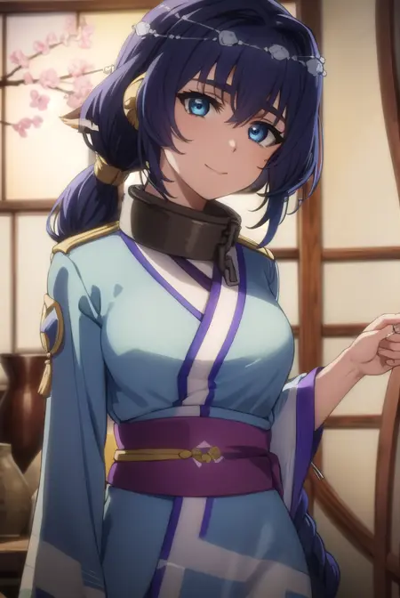 karura, 파란 머리, 동물 귀, 파란 눈, 긴 머리, 땋은 꼬리,