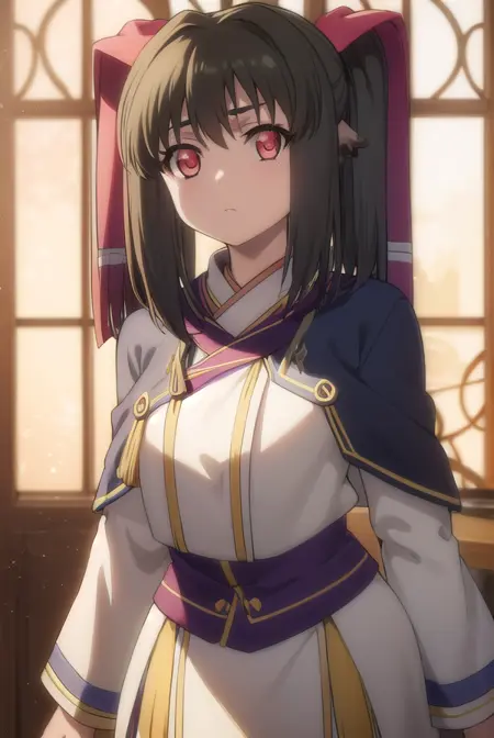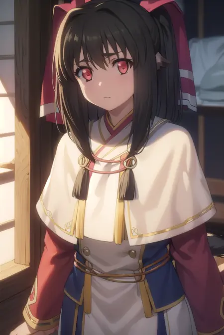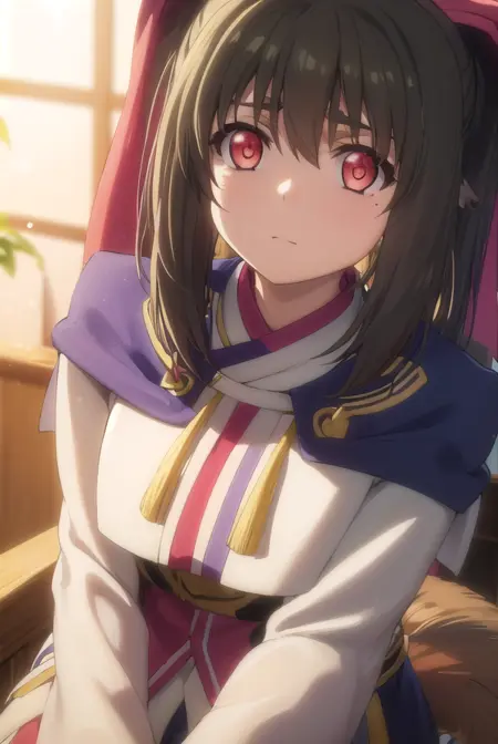 nekone, 긴 머리, 갈색 머리, (빨간 눈:1.3), 리본, 동물 귀, 트윈테일, 머리 리본, 주근깨, 눈 밑 주근깨,