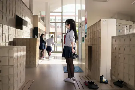 This is a LoRA that could possibly depict the geta-bako(shoelockers) scenery that is common in Japanese school buildings. これは日本の学校の校舎にありがちな下駄箱の風景をもしかすると描くことができるかもしれないLoRAです。