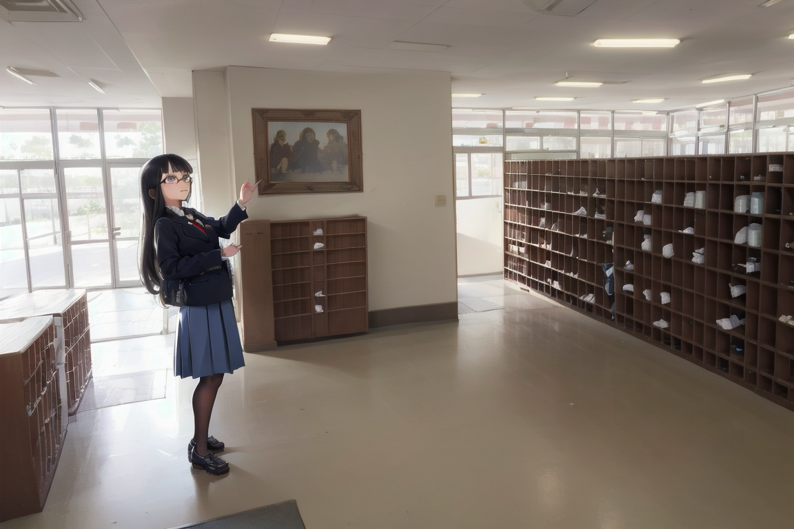 This is a LoRA that could possibly depict the geta-bako(shoelockers) scenery that is common in Japanese school buildings. これは日本の学校の校舎にありがちな下駄箱の風景をもしかすると描くことができるかもしれないLoRAです。