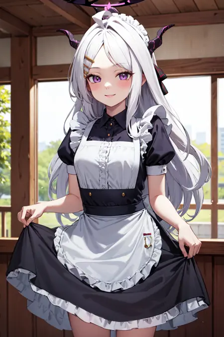 - aahina、ハロー、角、長い髪、アホ毛、片側の髪、分け目のある前髪、ヘアクリップ、ノースリーブシャツ、シャツ、黒手袋、ベルト、鉛筆スカート、黒スカート、サイドスリット、(翼:1.2)、低めの翼、(紫のタイツ:1.2)、膝ブーツ、黒い靴