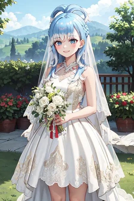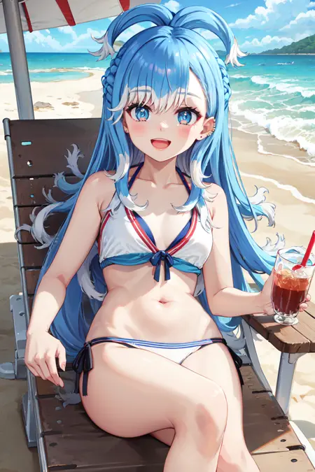 • cckobo、多色髪、ロングヘア、サイドポニーテール、花、(髪飾り:1.2)、シャツ、ブルーシャツ、ノースリーブ、ブレスレット、ハンドバッグ、ショートパンツ、ホワイトショートパンツ、ハイヒール、(ブルーフットウェア:1.2)