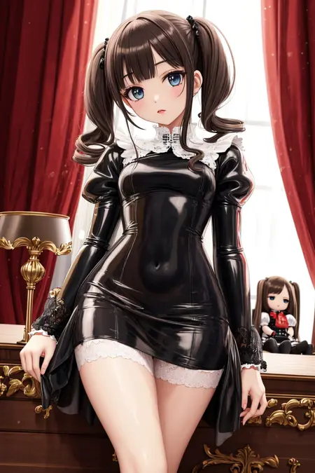 艶やかなセクシーな高級ラテックスドレスのドール、控えめな環境光、グローバルライティング、lora:flat2:-1、ネガティブ: EasyNegativeV2, badhandv4, worst quality, (noise:1.1), 不自然なポーズ、不自然な比率、顔の非対称、接続されていない要素、関係のない背景、汚れ、動物耳、